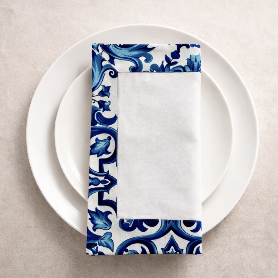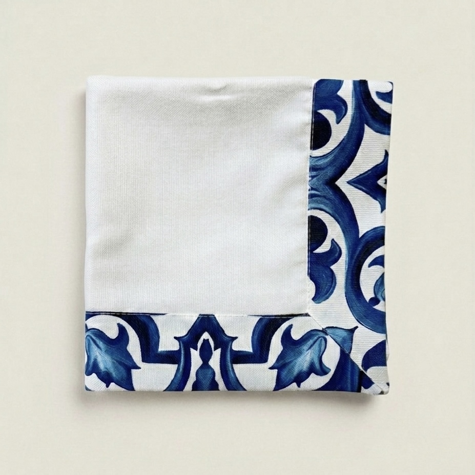 Apportez une touche d’élégance intemporelle à votre table avec nos serviettes carrées 40x40cm. Conçues dans un blanc cassé raffiné, elles sont sublimées par de magnifiques bordures à motif arabesque bleu, inspirées des carreaux traditionnels et du charme méditerranéen. Fabriquées en toile imperméable et anti tâches, ces serviettes allient esthétique et praticité.