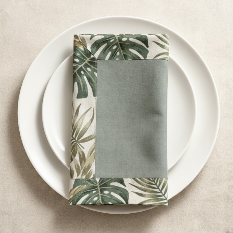 Apportez une touche d’élégance naturelle à votre table avec nos serviettes carrées 40x40cm. Conçues dans un gris raffiné, elles sont sublimées par de délicates bordures au motif tropical qui évoquent fraîcheur, exotisme et modernité. Fabriquées en toile imperméable et anti tâches, ces serviettes allient esthétique et praticité.