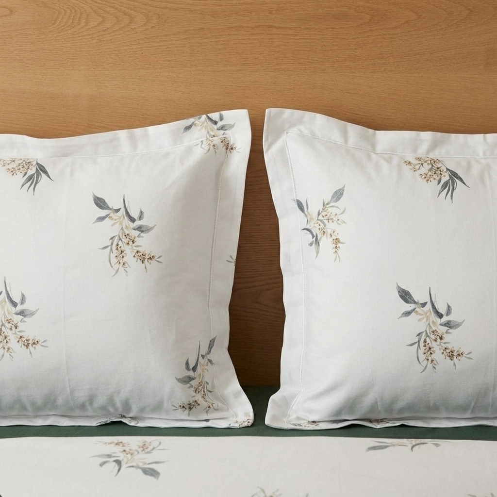 Pack housse de couette imprimée – Bouquet blanc cassé et vert
