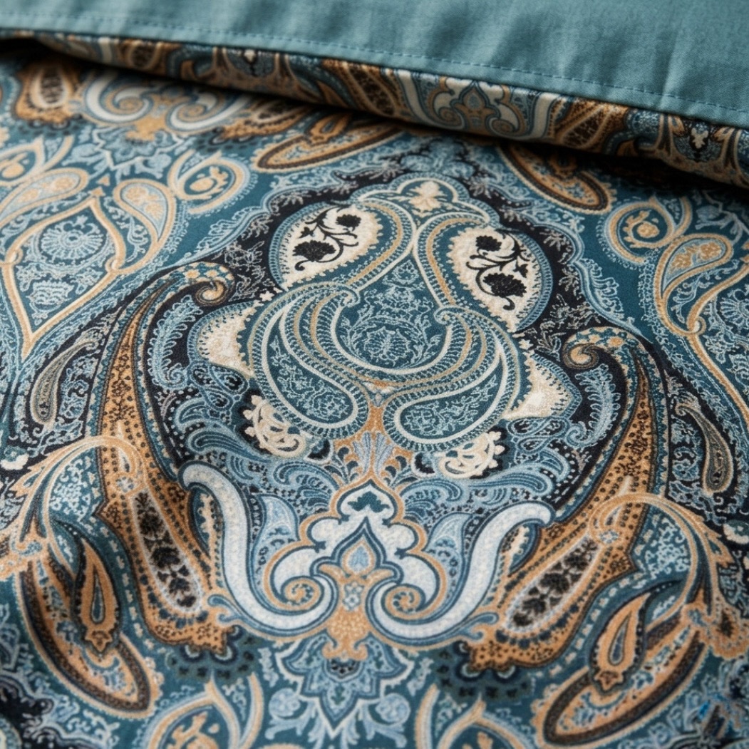 Pack housse de couette imprimée – Cachemire bleu canard & orange