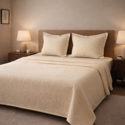 Jeté de lit 3 pièces - Crème texturé à points Le prix initial était : 320,000 DT.Le prix actuel est : 160,000 DT.