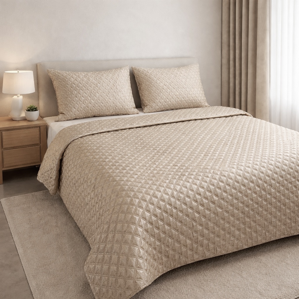 Jeté de lit 3 pièces – Matelassé doré
