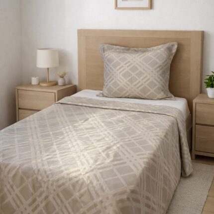 Parure de lit unie blanc cassé - Bordure jour échelle Le prix initial était : 280,000 DT.Le prix actuel est : 224,000 DT.
