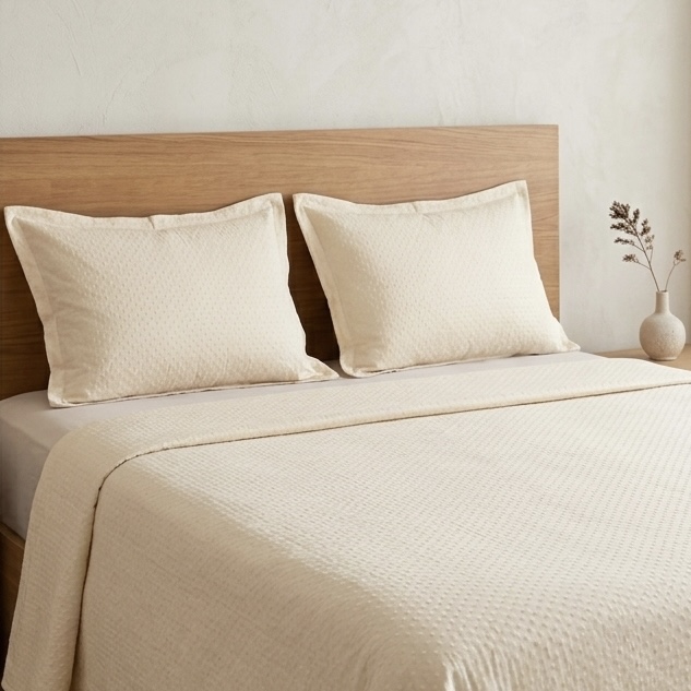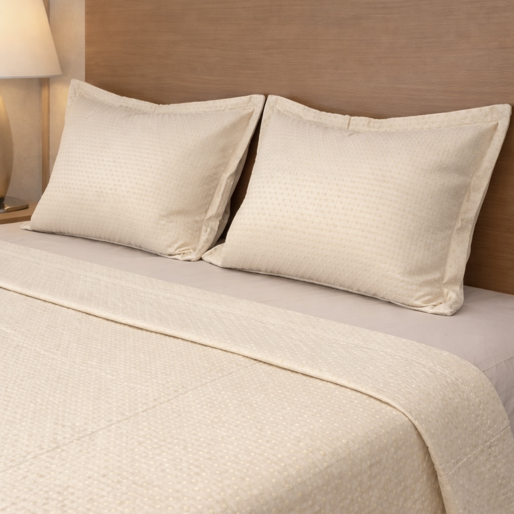 Jeté de lit 3 pièces – Crème texturé à points
