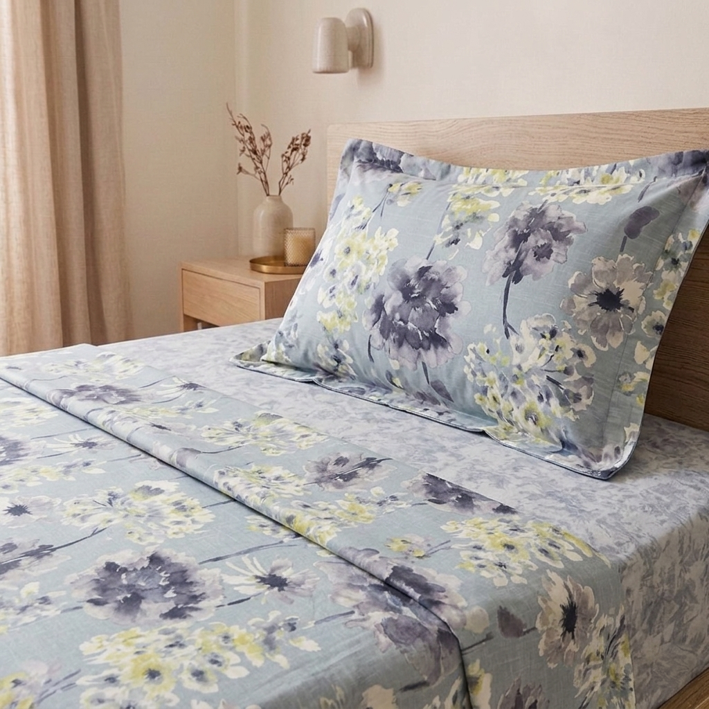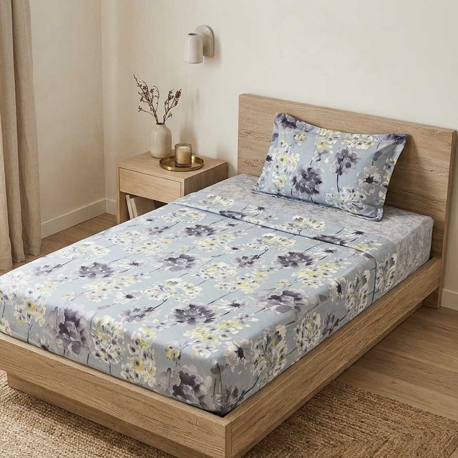 Apportez une sensation de fraîcheur et de douceur à votre chambre avec cette parure aux délicates fleurs bleutées. Son imprimé floral subtil évoque une matinée paisible de printemps, tandis que la microfibre offre un toucher soyeux, léger et enveloppant. Chaque nuit devient un moment de confort absolu, comme une caresse sur la peau, idéale pour se détendre et se ressourcer après une longue journée.