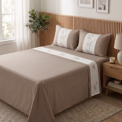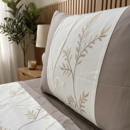 Apportez une touche d’élégance à votre chambre avec la parure de lit beige avec bande allure en satin de coton. Son fond uni est sublimé par une bande décorative raffinée qui ajoute un détail chic et harmonieux à l’ensemble. Grâce à la douceur et à la légèreté du satin de coton, cette parure offre un toucher soyeux et un confort agréable pour des nuits paisibles.
