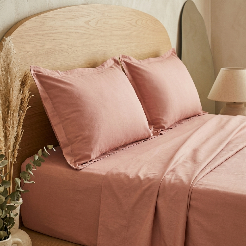 Offrez à votre chambre une élégance sobre avec notre parure unie en coton couleur rouge brique clair.