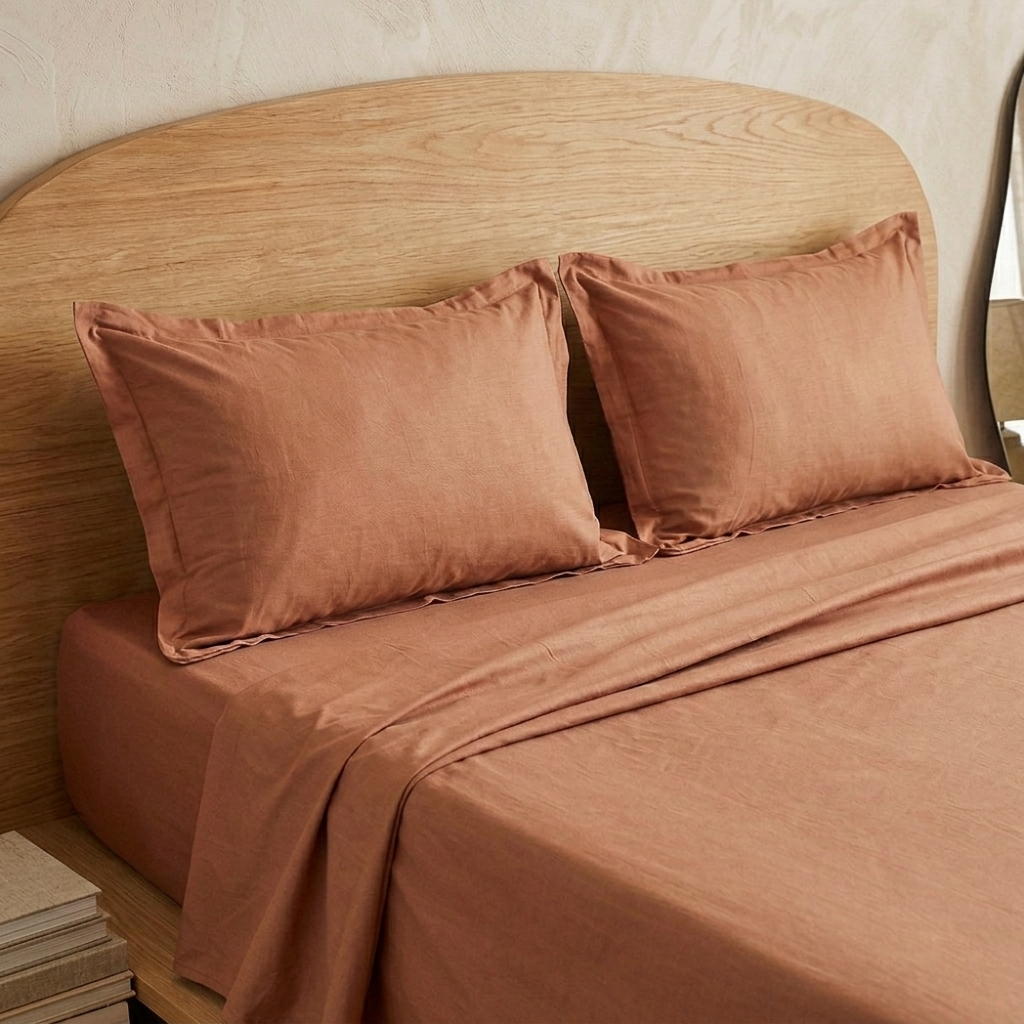 Offrez à votre chambre une élégance sobre avec notre parure unie en coton couleur rouille.