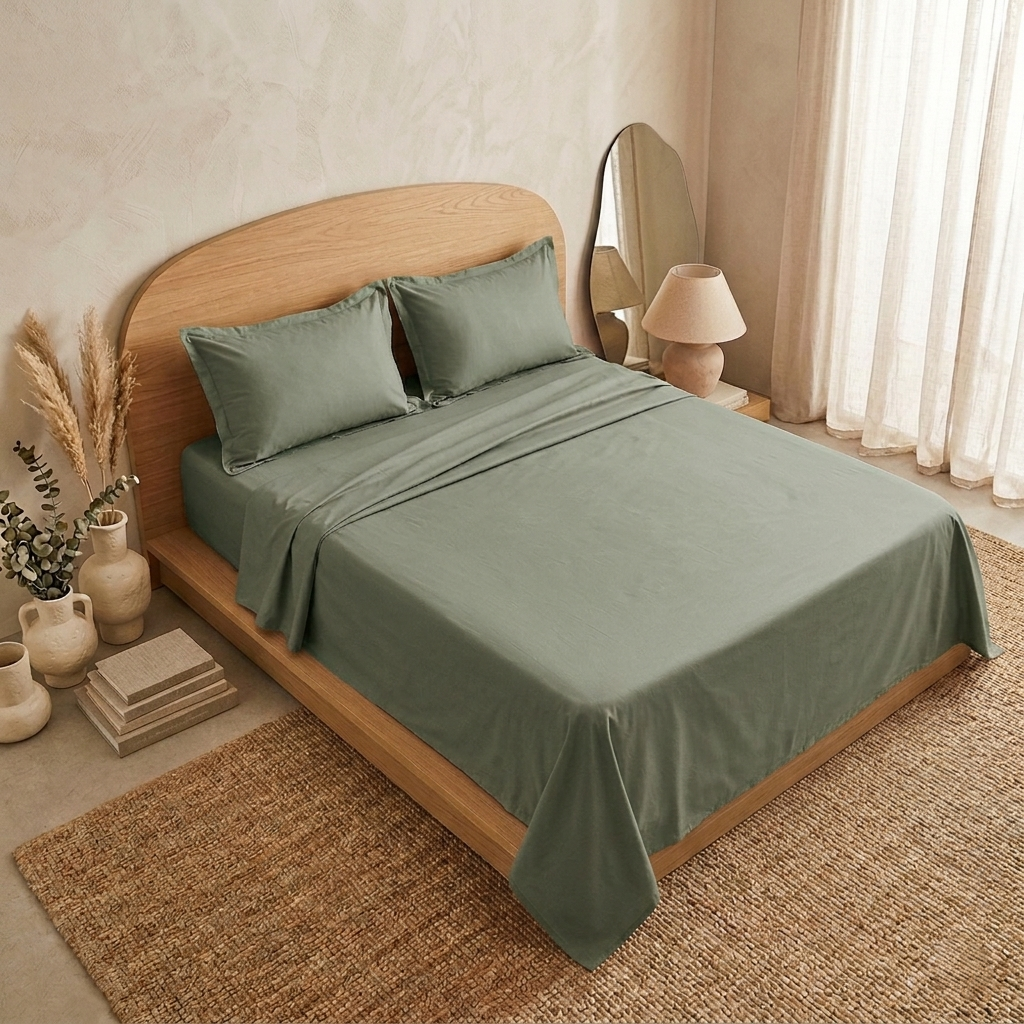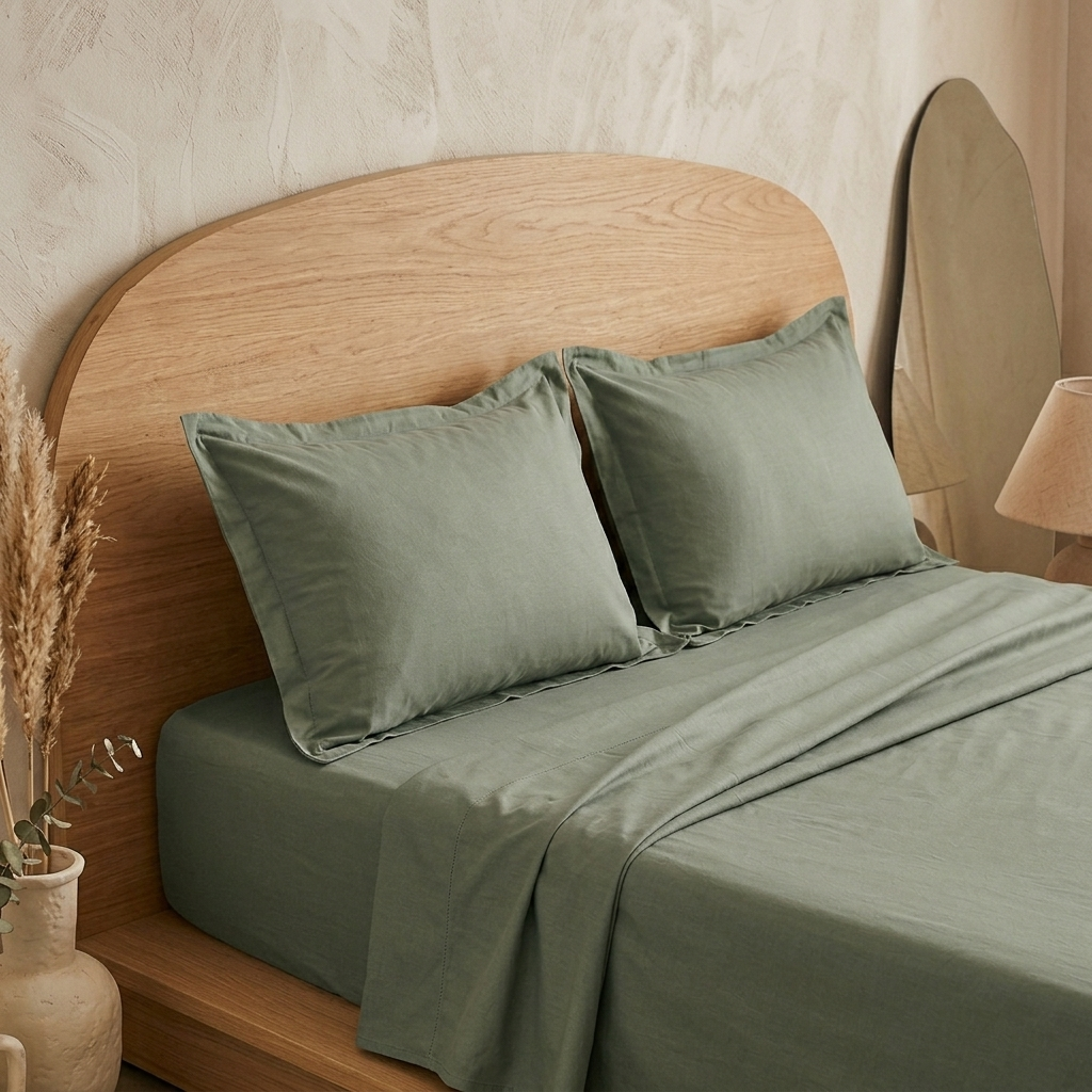Offrez à votre chambre une élégance sobre avec notre parure unie en coton couleur vert militaire.